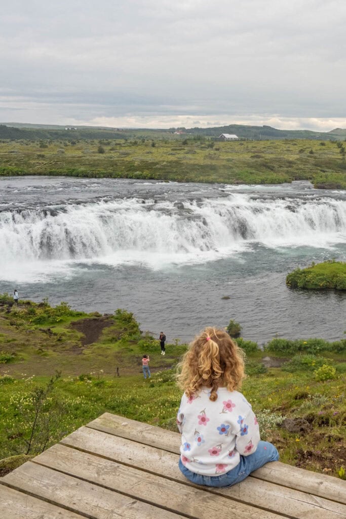 Vanuit zowel de Secret Lagoon als Friðheimar is het nog maar een klein stukje rijden naar Faxifoss, ook wel bekend als Faxi of Faxafoss. Veel mensen slaan deze ‘kleine’ waterval over en gaan gelijk door naar Gullfoss. Ik vond Faxifoss juist ook indrukwekkend, omdat de waterval zo breed is. Daarnaast is het hier heerlijk rustig. Er ligt een mooi vlonderpad met picknickplekken en uitzicht op de waterval en je kunt ook helemaal afdalen om de waterval van dichtbij de bewonderen.