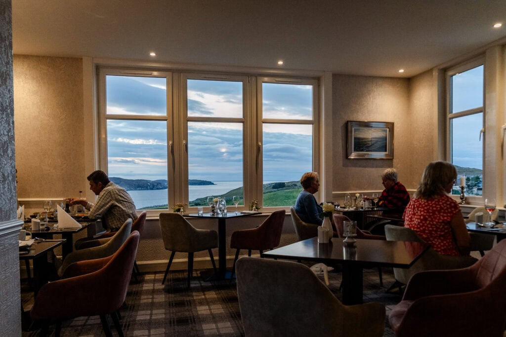 Ik verbleef ook 2 nachten in het Bettyhill Hotel. Dit hotel is één van de meest sfeervolle hotels waar ik in jaren geweest ben. Daarnaast was de hond hier echt meer dan welkom. Ze hebben overal rekening mee gehouden. Zo is er een aparte ontbijtzaal voor wie zijn hond liever niet op de kamer achterlaat, mag je in het café de hond meenemen en kun je daar eventueel ook dineren. Verder vond ik het een ontzettend lief detail dat er bij het ontbijt een schaaltje hondenkoekjes klaar stond. Naast dat het hotel heel hondvriendelijk is, is het ook voor jezelf een heerlijke plek. Het uitzicht is fantastisch, het eten in het restaurant is heerlijk en het personeel is ontzettend vriendelijk. Een dikke aanrader dus.